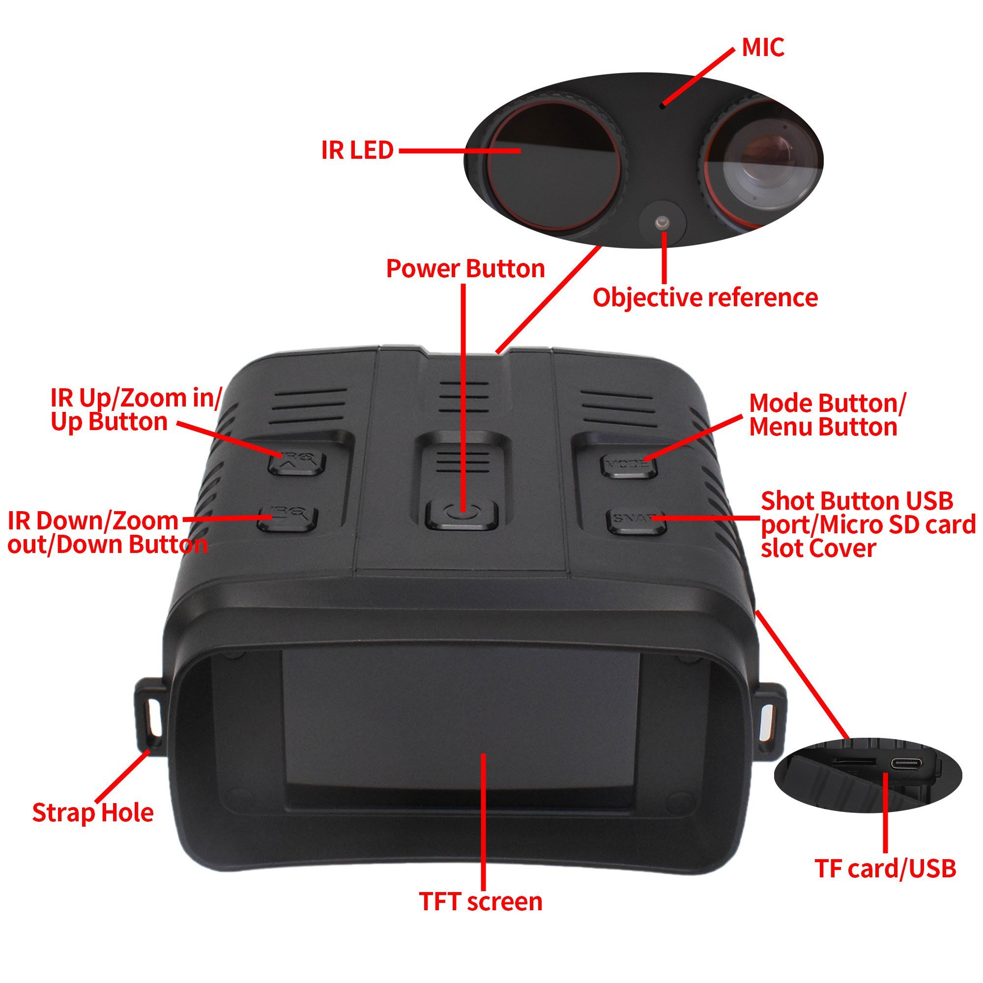 cho phép bạn nhìn rõ các vật thể. Với đèn chiếu sáng hồng ngoại đặc biệt, người dùng có thể nhìn thấy mục tiêu ở xa trong bóng tối hoàn toàn từ 164 yard đến 1093 yard. Nó được sử dụng hoàn hảo cho cắm trại, đi bộ đường dài, thám hiểm hang động, quan sát động vật và các hoạt động ban đêm khác.